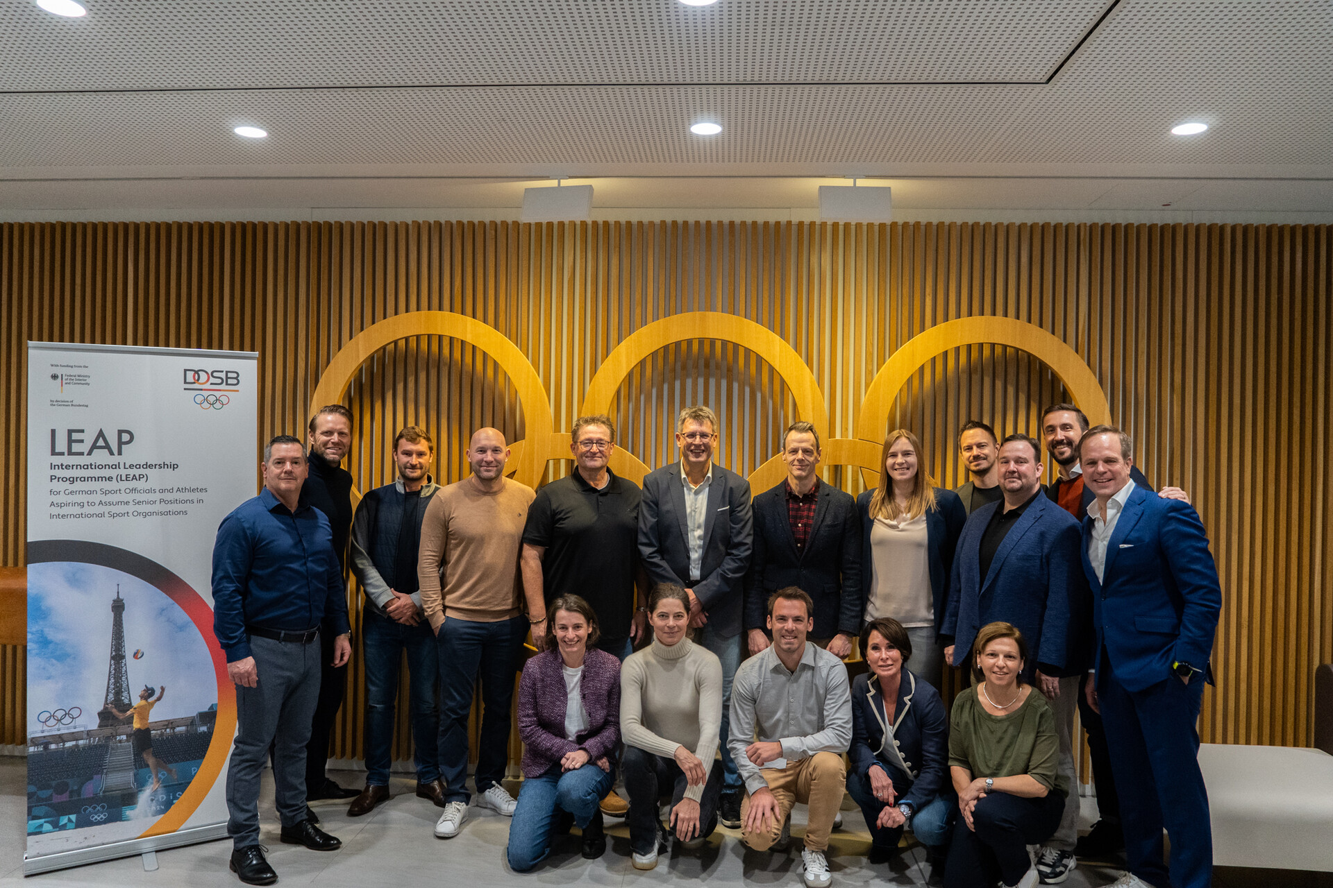 Internationale Sportorganisationen benötigen starke Stimmen: Mit dem LEAP-Programm qualifizieren DOSB und BMI 13 Teilnehmer*innen für Führungsaufgaben auf internationaler Ebene. Vom 13. bis 15. November absolvierte der zweite LEAP-Jahrgang 2024-25 das erste Modul im Haus des Deutschen Sports in Frankfurt am Main. Die Gruppe besteht aus Mitgliedern der Spitzenverbände und ehemaligen Olympischen und Paralympischen Spitzenathlet*innen.